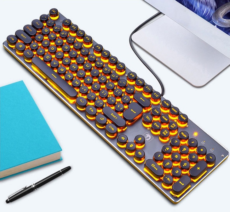 Bàn Phím Giả Cơ Chuyên Game Chính Hãng Huqu K100 thiết kế độc đáo và lạ mắt với Keycap tròn.