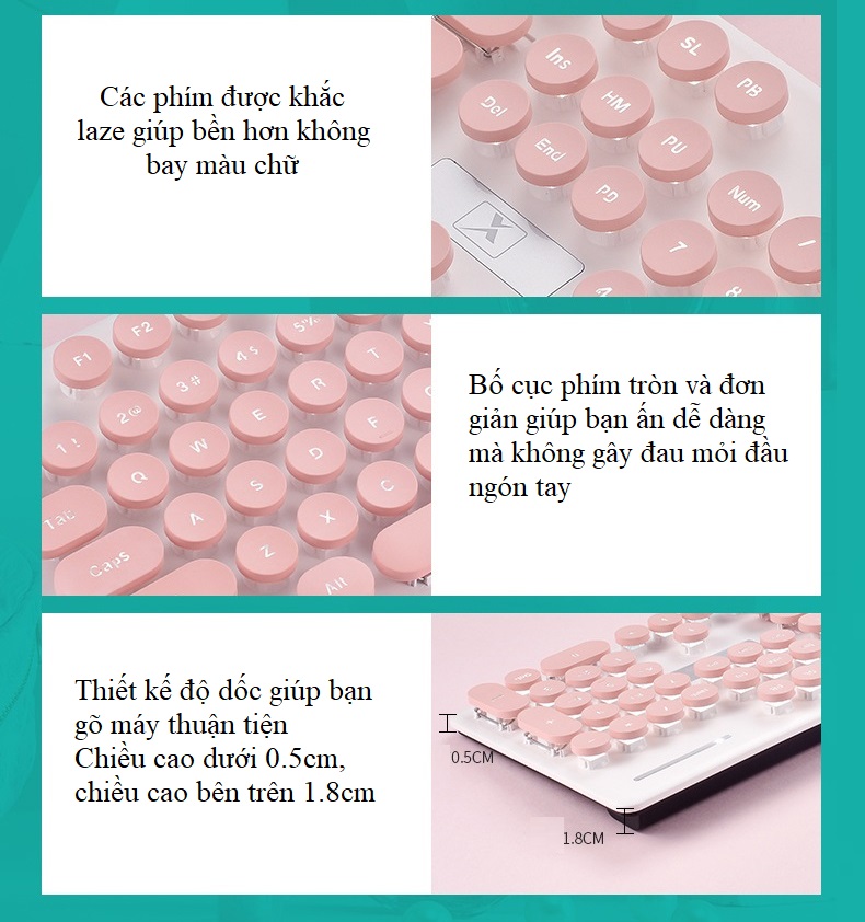 - Phím tròn vừa sang trọng độc đáo vừa hạn chế mỏi tay cho người dùng khi phải dùng trong thời gian dài, tạo cho người dùng cảm giác thoải mái.