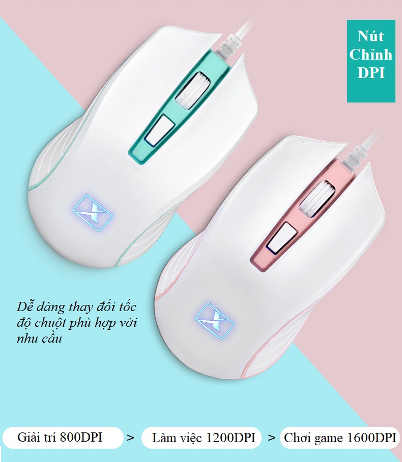 - Được trang bị 3 nấc chỉnh DPI 800/1200/1600DPI giúp tốc độ chính xác, trang bị đèn LED bắt mắt, nổi bật khiến cho chúng trở nên phong cách và năng động hơn.