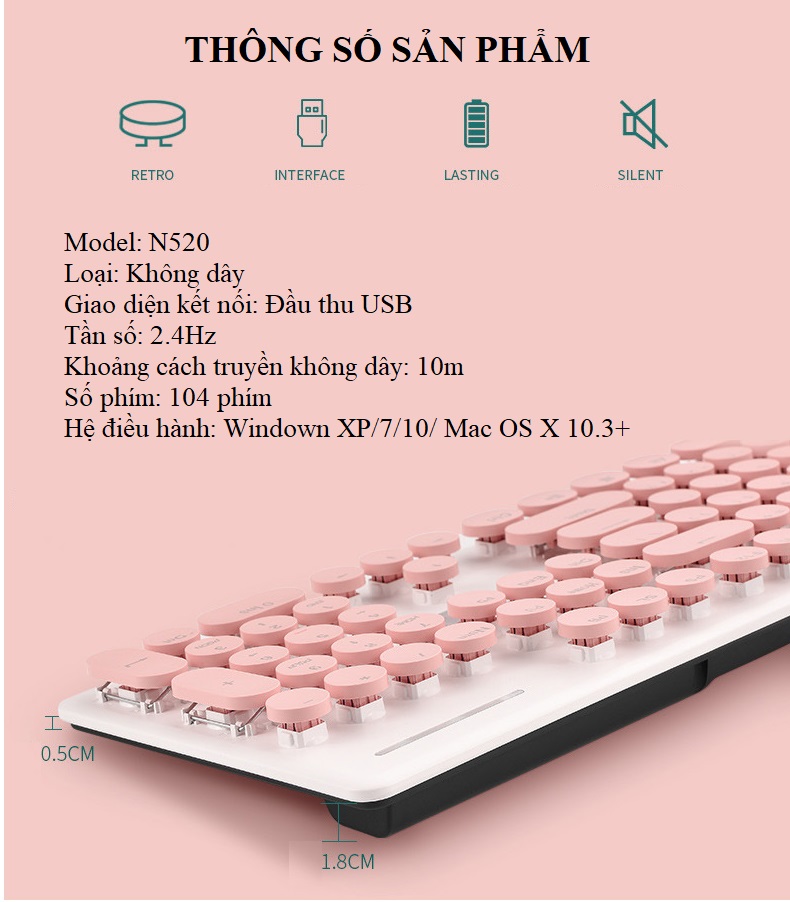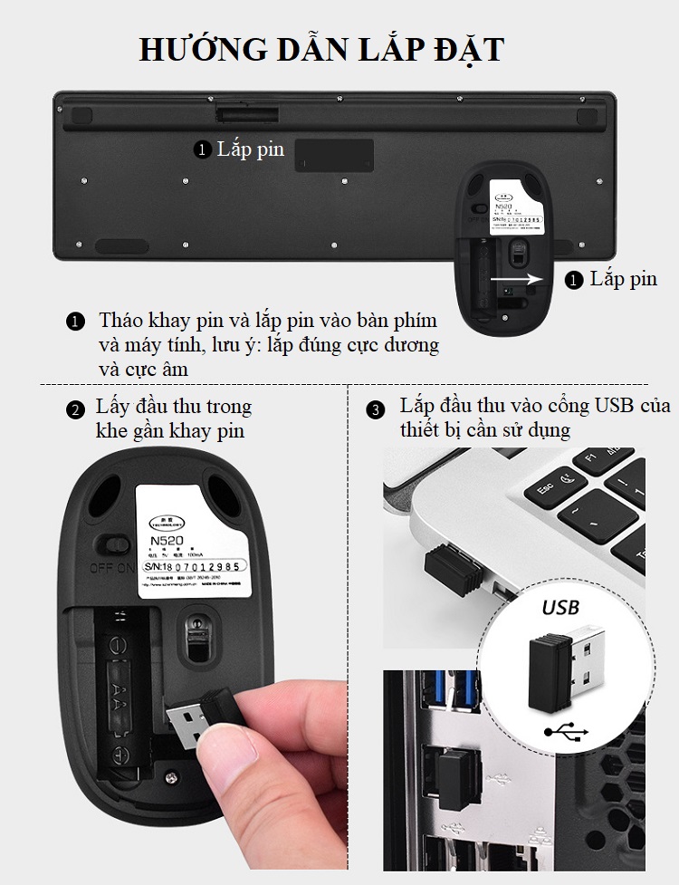 • Bàn phím và chuột không dây N520 tương thích với tất cả các hệ điều hành và thiết bị khác nhau. Rất dễ kết nối và dễ sử dụng.