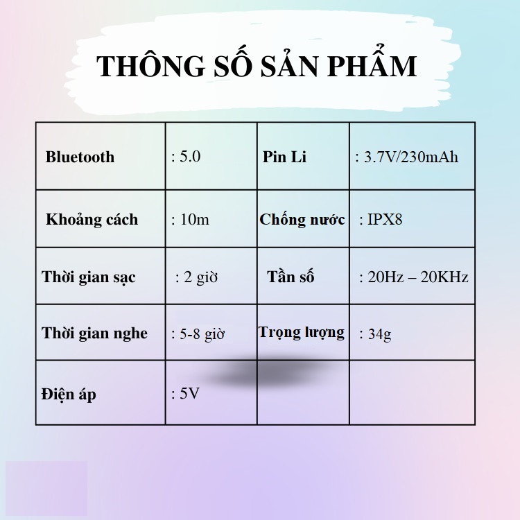 - Trọng lượng chỉ 34g, đeo lâu không bị đau tai. Gọn nhẹ dễ dàng mang theo bên mình.