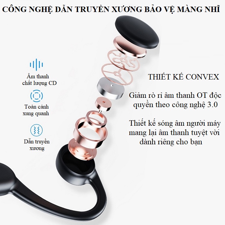 - Tai nghe dẫn truyền xương bơi lội áp dụng thiết kế Convex giảm rò rỉ âm thanh OT độc quyền theo công nghệ 3.0. Mang lại âm thanh tuyệt vời cho bạn.