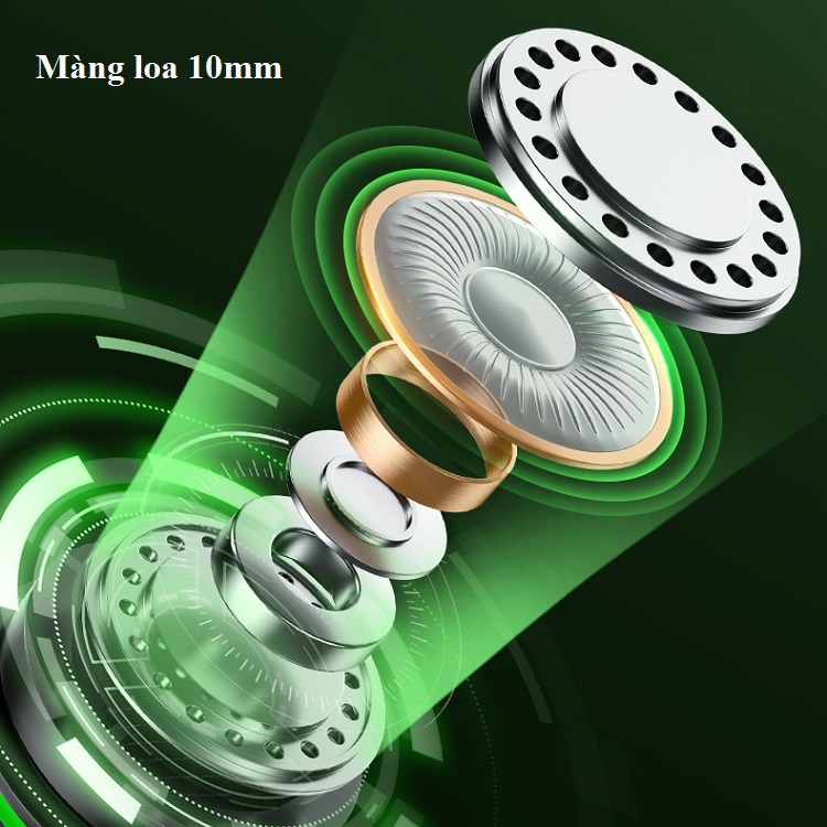 Kích thước màng loa 10mm cùng công suất màng loa 5mW